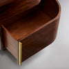 The collection’s signature experiment with arc and proportion and materiality bears out beautifully in these tables ideal for bedside or bracketing a sofa. Their volumes are inverses of one another (Banter End Table - Left), crafted in Daniella wood, and set atop an exaggerated 4-inch plinth.