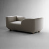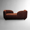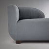 The interiors of curved arm rests display tufted lines that repeat in the fluted feet of hand-carved, beautifully finished white oak. Facing backs sleekly curve at the bottom of the frame. These deft touches are tailored to the highest artisanal standards. This tête-à-tête makes for the perfect conversation piece.