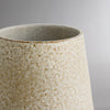 The clean lines of this vessel’s silhouette – a long, tapered mouth punctuated by twin indentions on either side – contrast with its speckled surface, created from a volcanic glaze into a matte, textured finish reminiscent of moonstones. This sculptural vase is ideal for taller foliage or as an art objet on a pedestal or entry table. The HAVEN is balanced by its darker counterpart, the HALE.