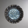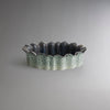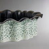An impressive object entirely shaped and finished by hand, it reveals very different glaze treatments inside and out. While expertly worked to achieve a scalloped edge and channeled walls, the exterior glaze is a speckled texture that takes tremendous skill to achieve.